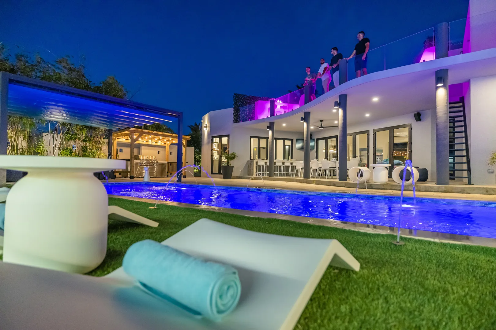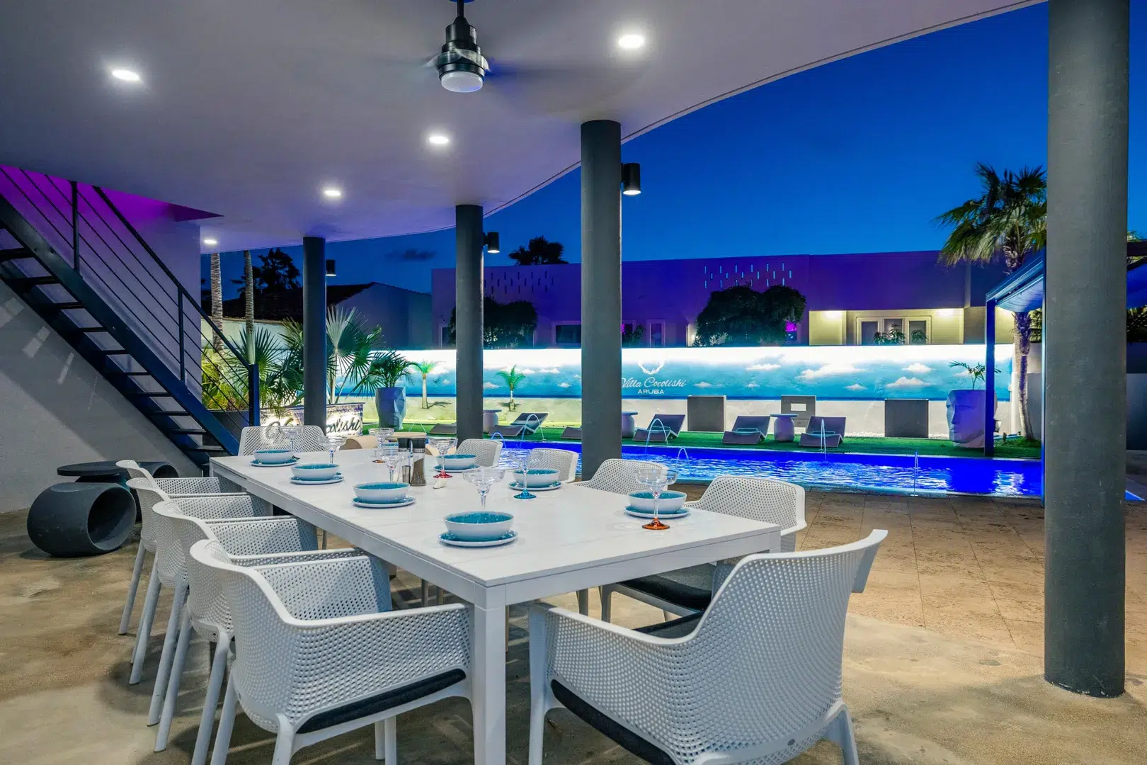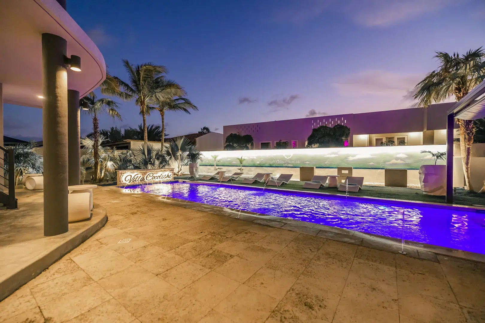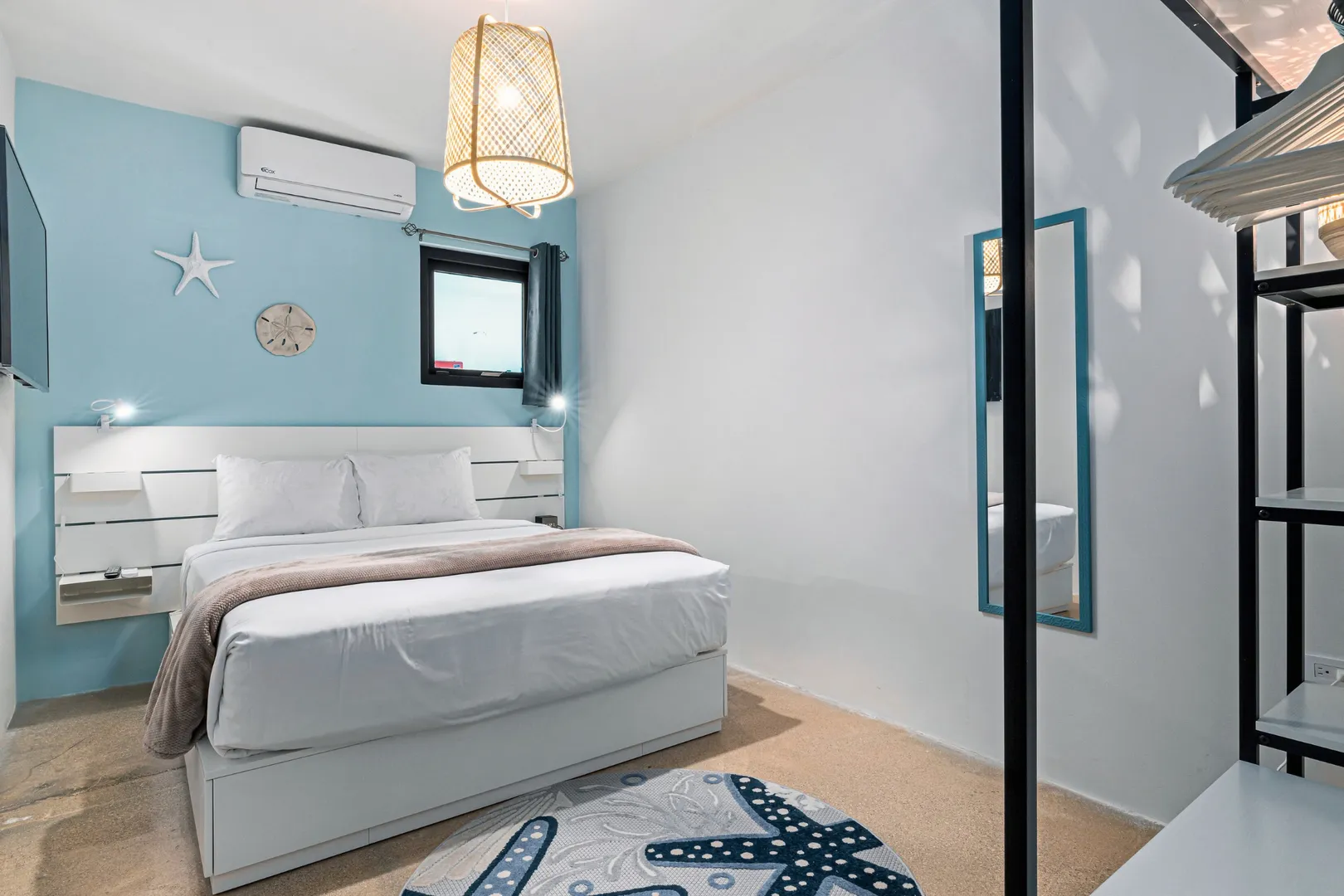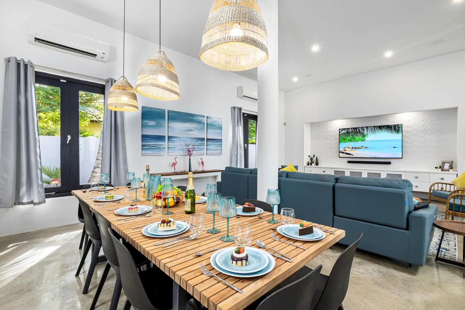 Experience the epitome of modern luxury with our open-concept villa, featuring a fully equipped kitchen with quartz countertops, a spacious dining area for ten, and entertainment amenities like a 75-inch Smart TV. Enjoy high-speed Wi-Fi, air conditioning, and a washer and dryer for your convenience. Our villa is designed to provide a seamless blend of comfort and style, ensuring a memorable stay in Aruba.