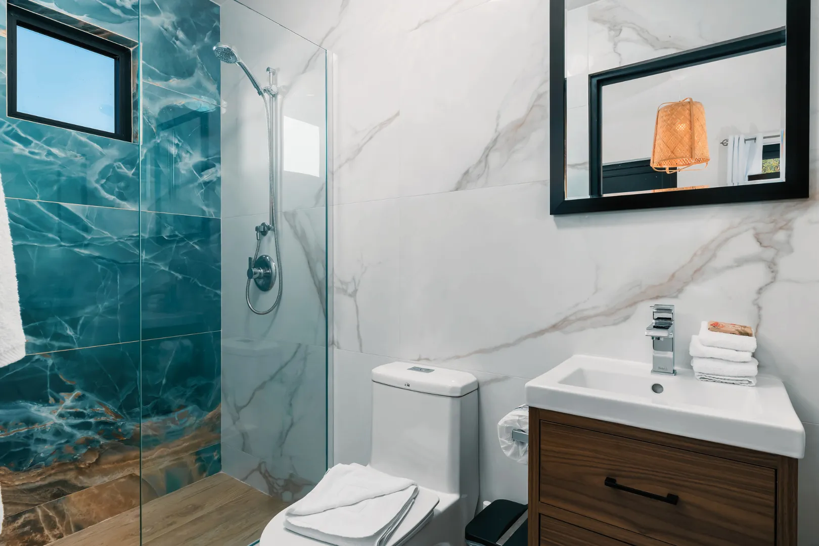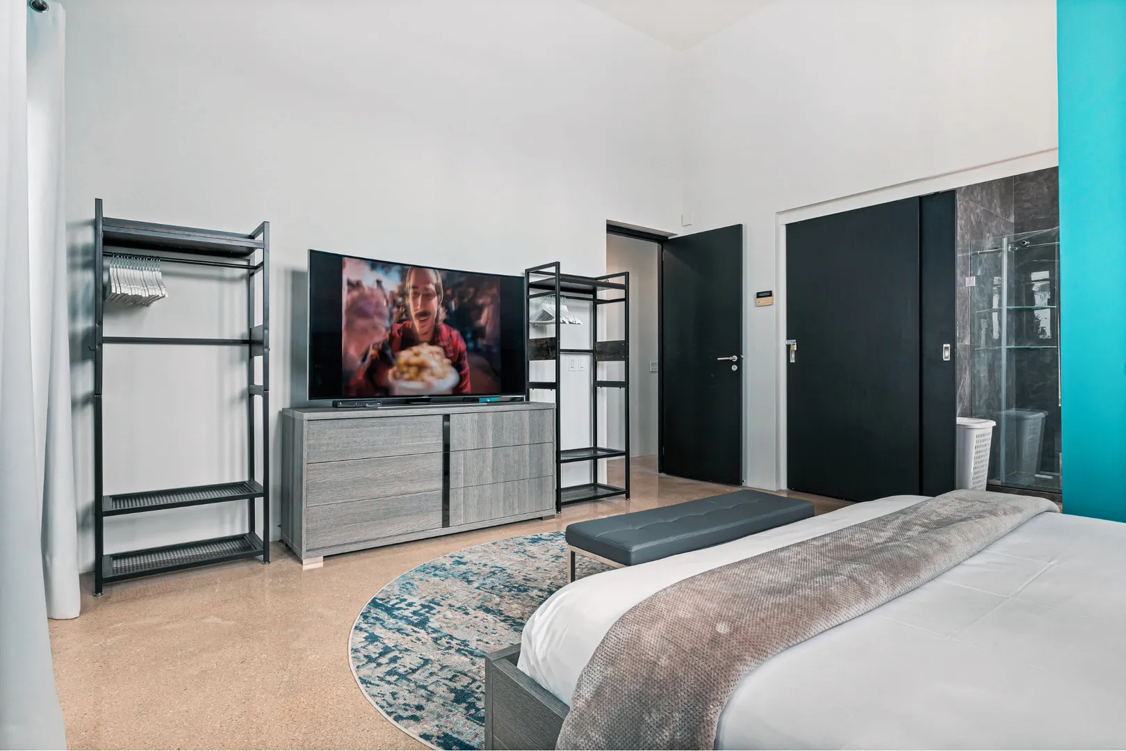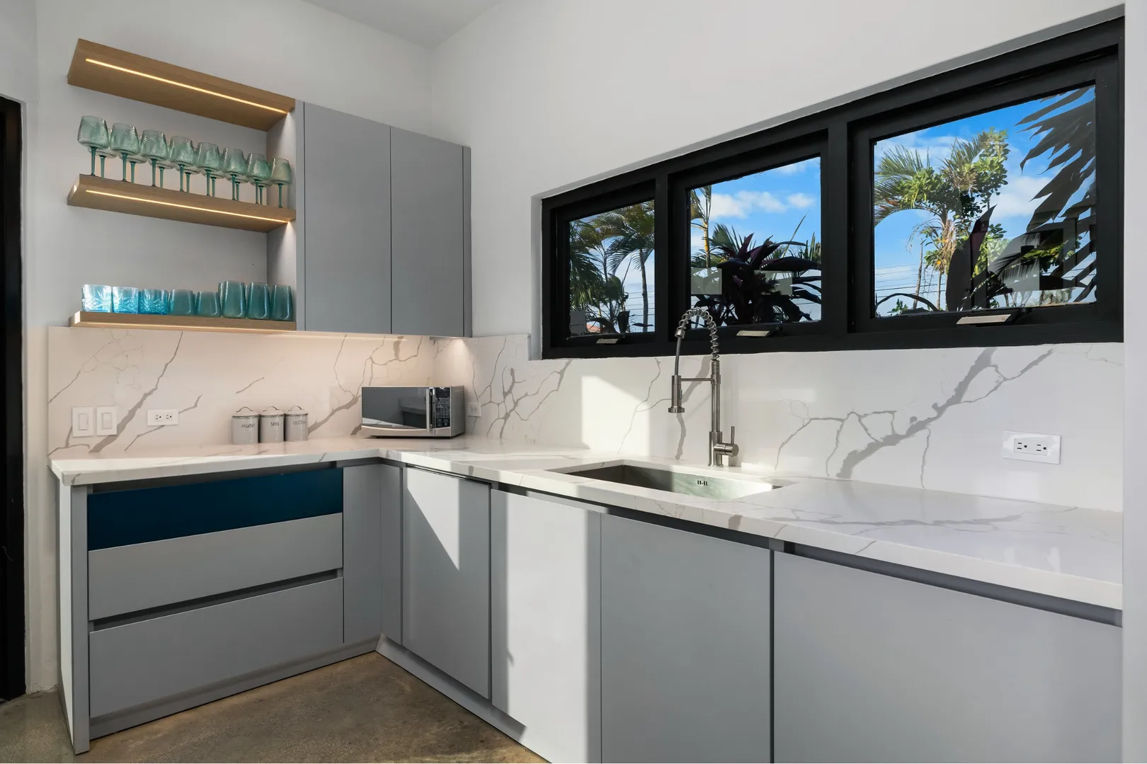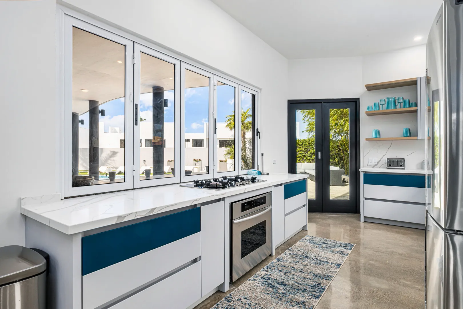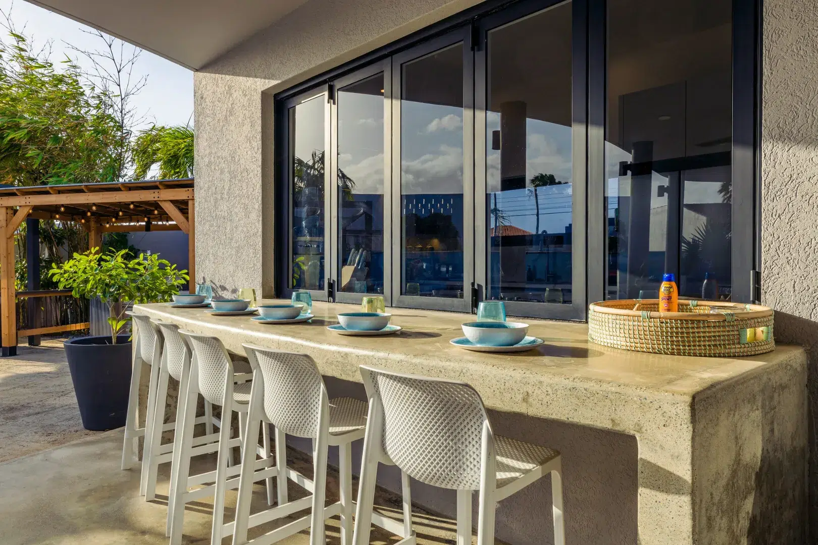 Experience the epitome of modern luxury with our open-concept villa, featuring a fully equipped kitchen with quartz countertops, a spacious dining area for ten, and entertainment amenities like a 75-inch Smart TV. Enjoy high-speed Wi-Fi, air conditioning, and a washer and dryer for your convenience. Our villa is designed to provide a seamless blend of comfort and style, ensuring a memorable stay in Aruba.